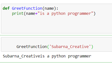GreetFunction(x+’is a python programmer’) means we call the function.